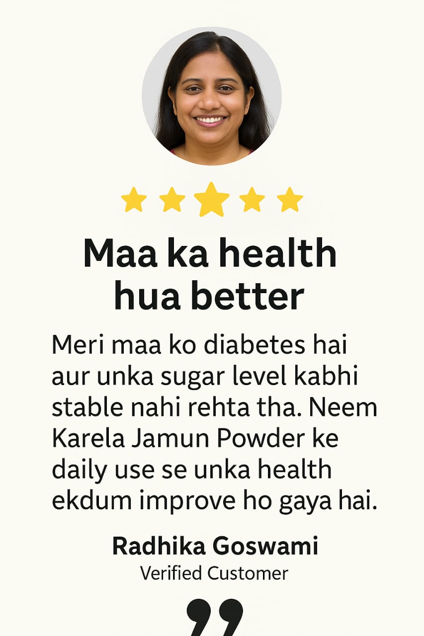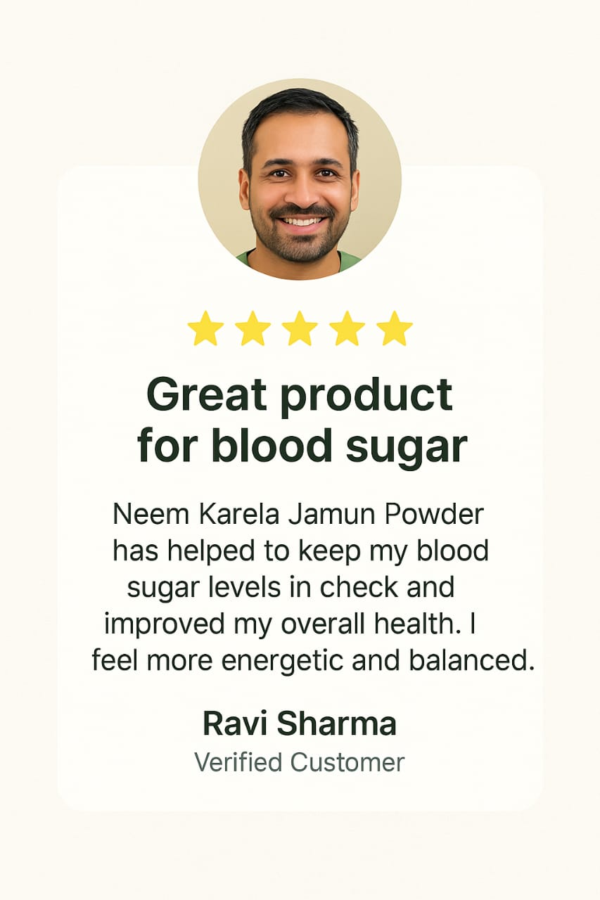 Kavyas Ayurveda’s Neem Karela Jamun Powder is a potent Ayurvedic blend of three time-tested herbs—Neem, Karela (Bitter Gourd), and Jamun (Indian Blackberry)—known for their natural ability to regulate blood sugar levels, purify blood, and support digestion.
